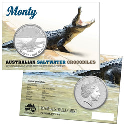 In the fourth year of this annual collaboration between the Royal Australian Mint and Australia Zoo Monty the Saltwater Crocodile has been struck on a 1oz 99.9% pure silver frosted uncirculated coin.