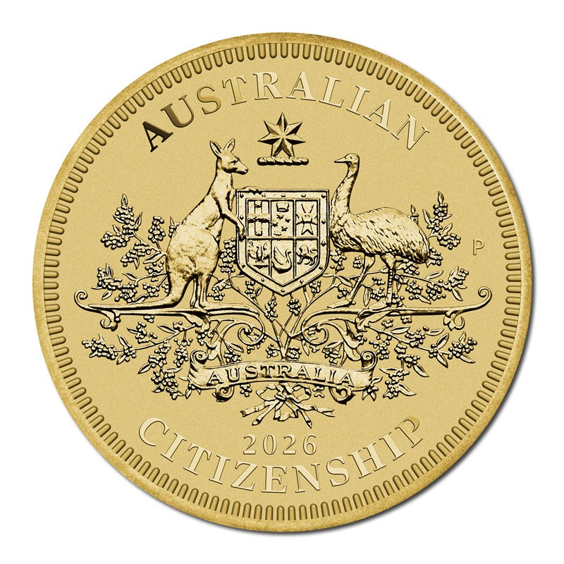 The Perth Mint has released its annual Australian Citizenship al/bronze uncirculated $1 coin dated 2026 depicting the Australian Commonwealth Coat of Arms.