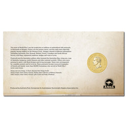 It contains the official Australia Post $1.20 Postcards from the Front stamp and a commemorative $1 coin struck by The Perth Mint. The design honours the personal letters and postcards sent by Australian service members during wartime, offering a poignant glimpse into the human side of military history. A sought-after collectible for both numismatic and philatelic enthusiasts.