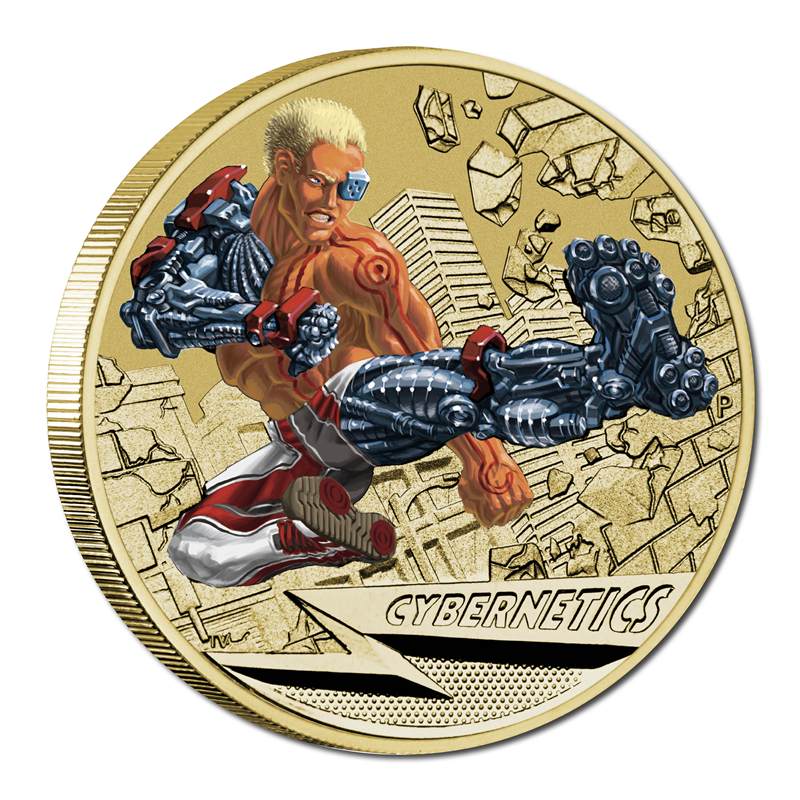 The 2014 Young Collectors Superpowers - Cybernetics coin is struck from aluminium bronze.