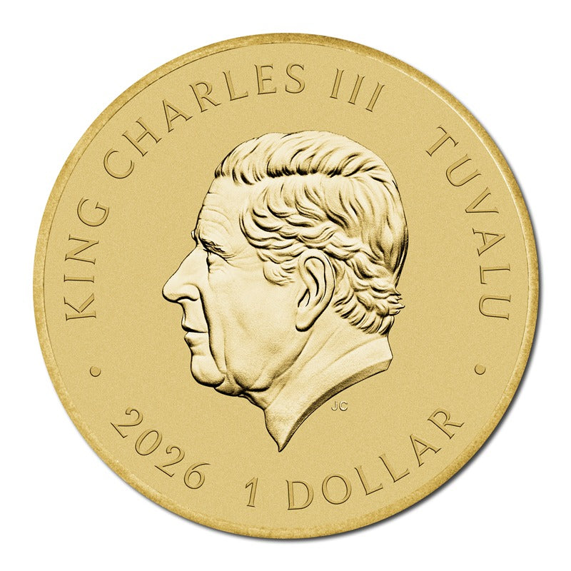 The coin’s reverse presents an illustration of a coloured dragon dancing among celestial clouds. As well as the Chinese scroll with Chinese characters “新年快乐”, meaning Happy New Year, the reverse also incorporates The Perth Mint’s ‘P’ mintmark.
