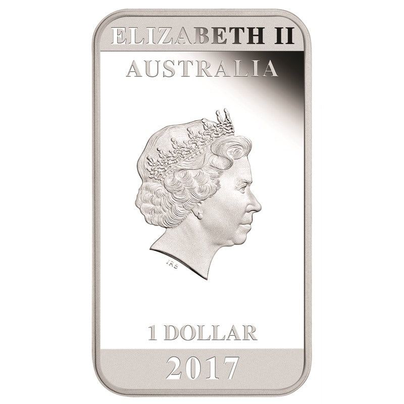 Struck from 99.9% pure silver this one dollar one ounce rectangular proof features a coloured representation