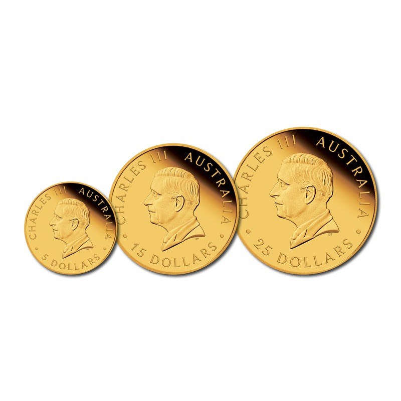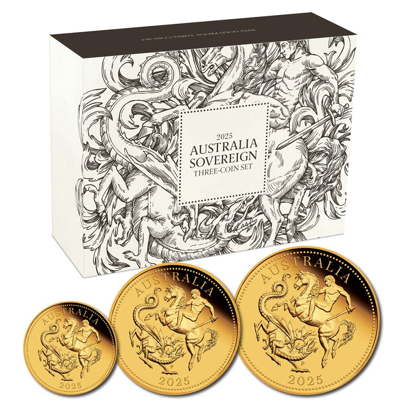 These modern collectables re-imagine the famous design. The reverse design portrays a naked warrior on horseback brandishing a sword above a dragon. Each coin’s image appears within a decorative circle of raised dots, together with the inscription ‘AUSTRALIA’, ‘2025’, and The Perth Mint’s ‘P’ mintmark.