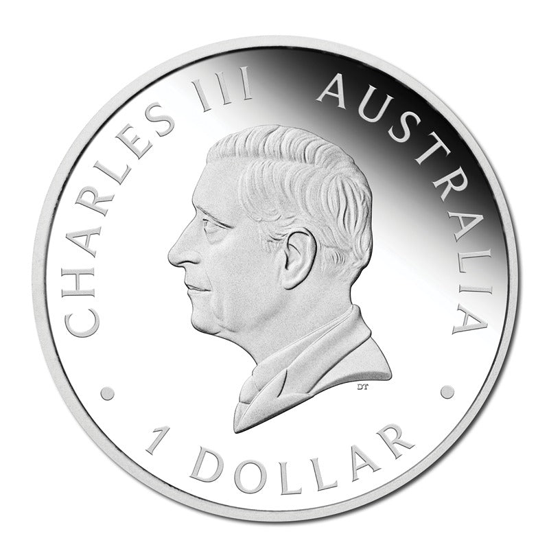 The coin’s reverse portrays the wedge-tailed eagle with outstretched wings. Reflecting its formidable hunting skills, the artistry highlights the bird’s large and superbly effective eyes and large, hooked beak.