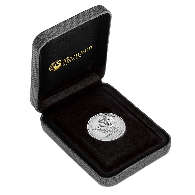 The Perth Mint is pleased to present the Australian Wedge-tailed Eagle 2025 1oz Silver Reverse Proof Ultra High Relief Coin.