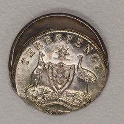 Australian Coat of Arms - Design by W H J Blakemore. Legend: THREEPENCE - 193? 115 rim beads. |
