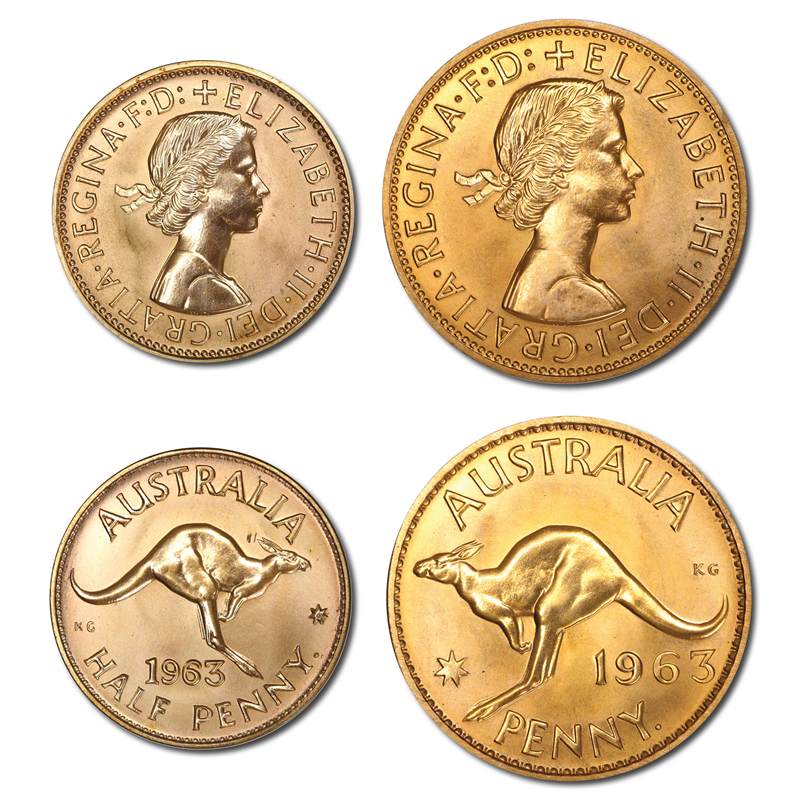 Struck by the Perth Mint in 1963 for collectors and investors, the 1963 halfpenny and penny features the usual dot after "Y" as so many other coins minted at the Perth Mint.