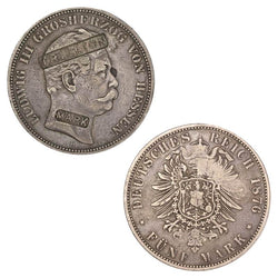 - One Trillion Mark Counterstamp on Hesse 1876 Silver 5 Marks