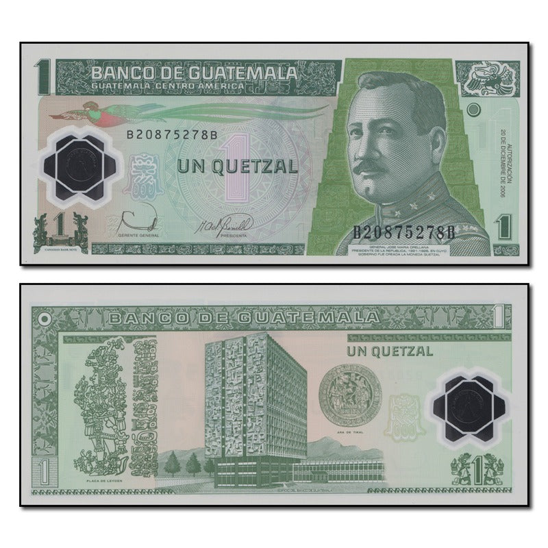 - Back: Plate of Leyden, Banco de Guatemala building, Ara del Tikal seal
