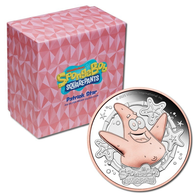 Tuvalu 2025 Spongebob Squarepants - Patrick Star 2oz Silver Proof Gilded